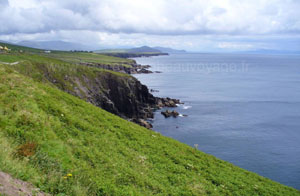 La pointe extrême ouest de la péninsule de Dingle est magnifique de couleurs, avec de petites criques de sable blanc et d’eau turquoise, seule la température n’est pas paradisiaque pour se baigner, mais c’est grandiose. Sans parler des paysages toujours aussi verdoyants qui tranchent avec la couleur de l’eau et la côte déchiquetée.