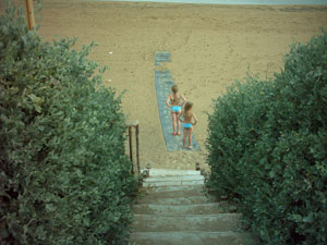 Par contre pour aller se baigner, il faut longer la plage avant de trouver un endroit sans proliférations d'algues. La mer est calme et peu fréquentée. Par contre nous passons une très mauvaise nuit, musique du bar ambiance discothèque une bonne partie de la nuit juste à côté, et « courses » et dérapagesde voitures et de scotters sur la route juste derrière nous une autre bonne partie de la nuit ! Avec tout cela vous ajoutez des sortes de coups de canons au petit matin à la fraîche et « la sauce est prête » !!! Le lendemain, on profite encore un peu de la plage, idéale pour les enfants car calme et nous repartons aussitôt mangé pour trouver un endroit plus calme afin de passer une meilleure nuit.