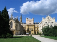 Telc est encore une autre ville classée au patrimoine de l'humanité par l'Unesco. C'est encore un bijou de la renaissance, légèrement baroquisé. Comme d'habitude on verra la place principale et son ensemble de maisons à pignons, le château nous ne visiterons que son petit musée. On retourne au parking en longeant les lacs on jouit ainsi d'une superbe vue sur la ville. On ira déjeuner aqu pied du château de Vranov nad Dyji près de l'Autriche. Znojmo puis Lednice. Nous traversons des contrées agricoles, viticoles et arboricoles riches, les abricots sont extras ….La végétation est luxuriante. Le château de Lednice sera visité avec un guide tchèque mais avec documentation papier en français. Dans l'immense parc sont disséminées diverses constructions : minaret, aqueducs, pavillon de chasse. Nous irons jusqu'au minaret accompagnés par les moustiques…… Impossible de rester pour la nuit sur le parking, on se rabat sur le camping familial de Lednice pas terrible : bruyante et vétuste.