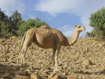 Passant au beau milieu d'un troupeau de dromadaires, nous faisons route vers le nord sur une longue piste agréablement roulante, en cessant tout arrêt photo pour gagner du temps.