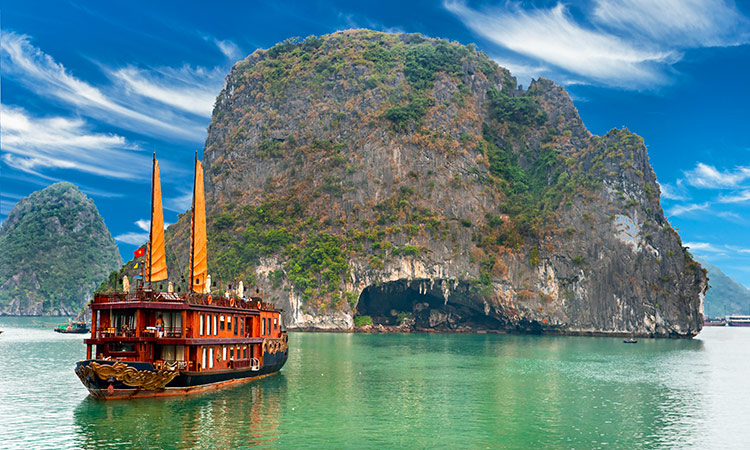 Certainement l’un des endroits les plus incroyables (et les plus fréquentés) du Vietnam, la baie d’Halong, faite de pics karstiques recouverts de végétation, vous séduira à coup sûr ! Grimpez à bord d’un bateau pour une croisière de 2 jours. Naviguez entre les reliefs de la baie, partez à la recherche de petites grottes cachées, prenez un kayak pour partir à l’aventure et ne ratez surtout pas le coucher de soleil qui vient doucement éteindre l’horizon. 2 jours de bonheur et de détente vous attendent !
